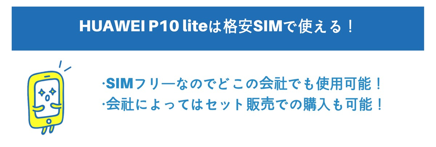 HUAWEI P10 liteはSIMフリーの端末であるためどこの格安SIMでも使うことができます。