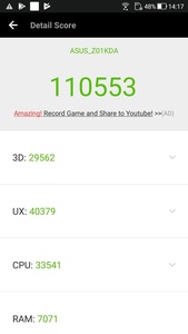 Antutuのベンチマークスコアは110,553を記録しており、格安スマホの中では最上位の数値です。