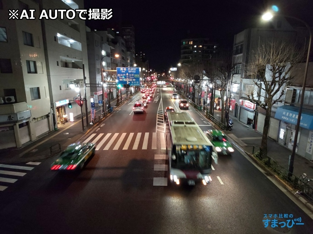 以前レビューした「AQUOS sense2 SH-M08」の時も思いましたが、AQUOSシリーズは光の取り込みがうまい。HUAWEIのP20 liteなどもカメラには定評がありますが、光を取り込む点ではAQUOSシリーズが上な気がします。夜9時くらいに陸橋から撮影しましたが思った以上によく撮れていると思います。