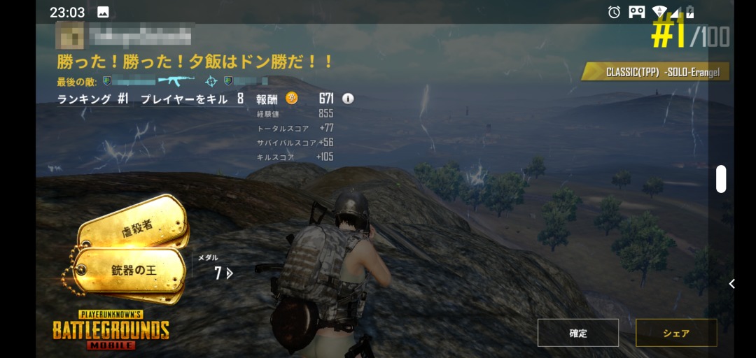 「PUBG Mobile」~いつも実機を触るときにはプレイするのですが、さすがはSnapdragon 845。高フレームレートでもサクサクプレイが可能です。これなら「ドン勝」を食べる回数が増えそう。