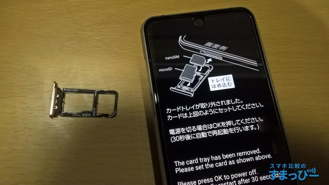 左サイドにはSIMカードとSDカード用のトレーがありますが、いつものAQUOSシリーズ同様SIMピンいらずで指で引き抜けるタイプです。