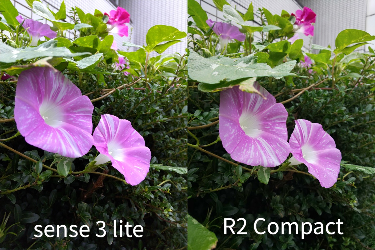 屋外で撮影しました。こちらもピンク色がsense3 liteのほうが鮮やかに写っているのがわかります。暗所や緑色は同じように見えます。