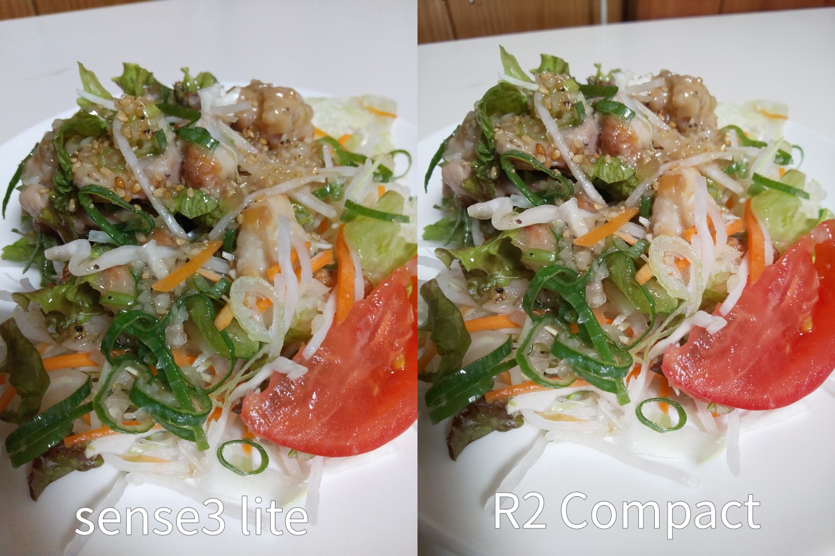 料理の写真の色もかなり忠実に再現されています。ただ、これに関してはR2 Compactのほうが明るく写っています。