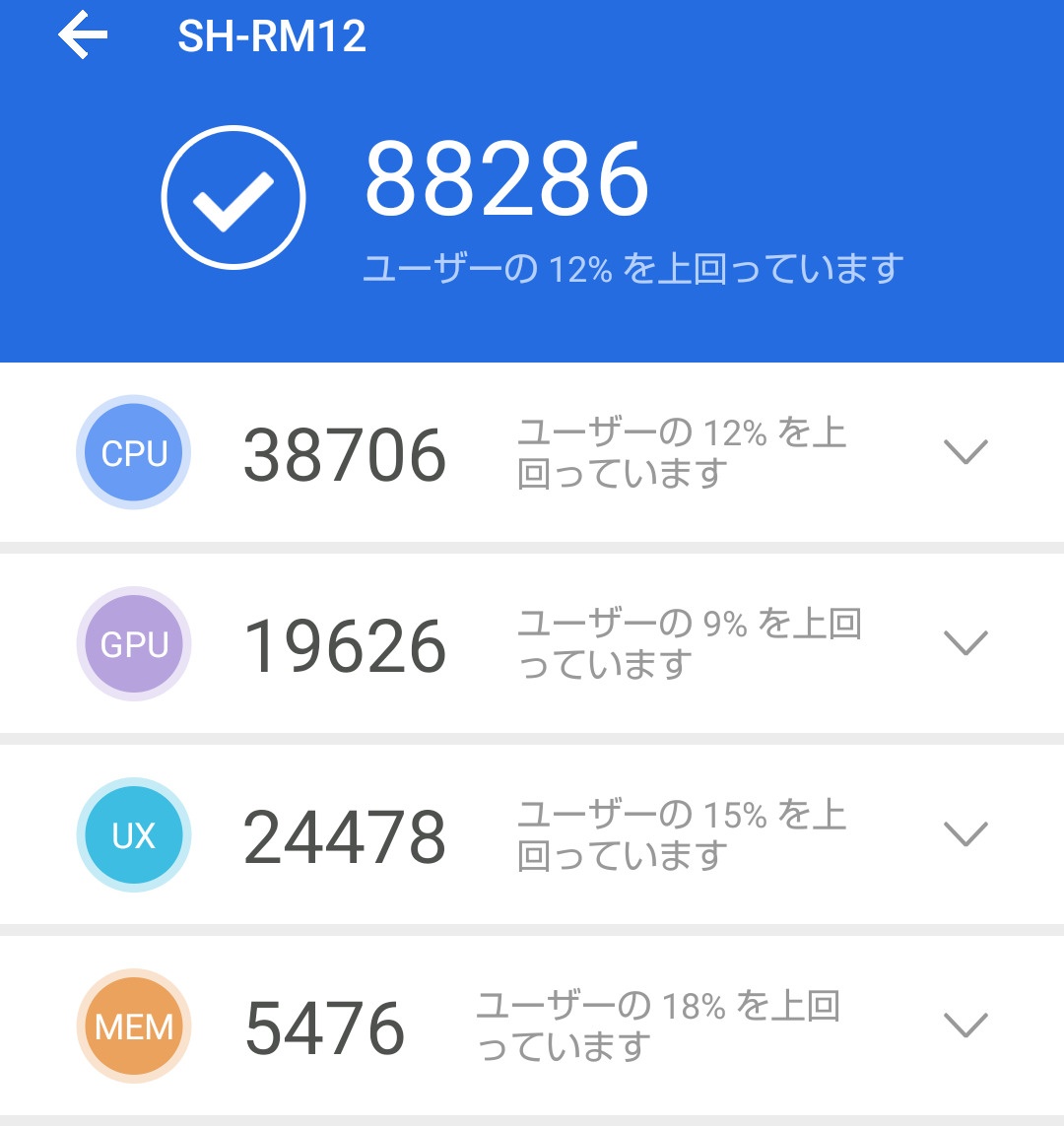 トータルスコア「88286」です。2万円台のスマホとしてはかなり優秀な結果ではないでしょうか。