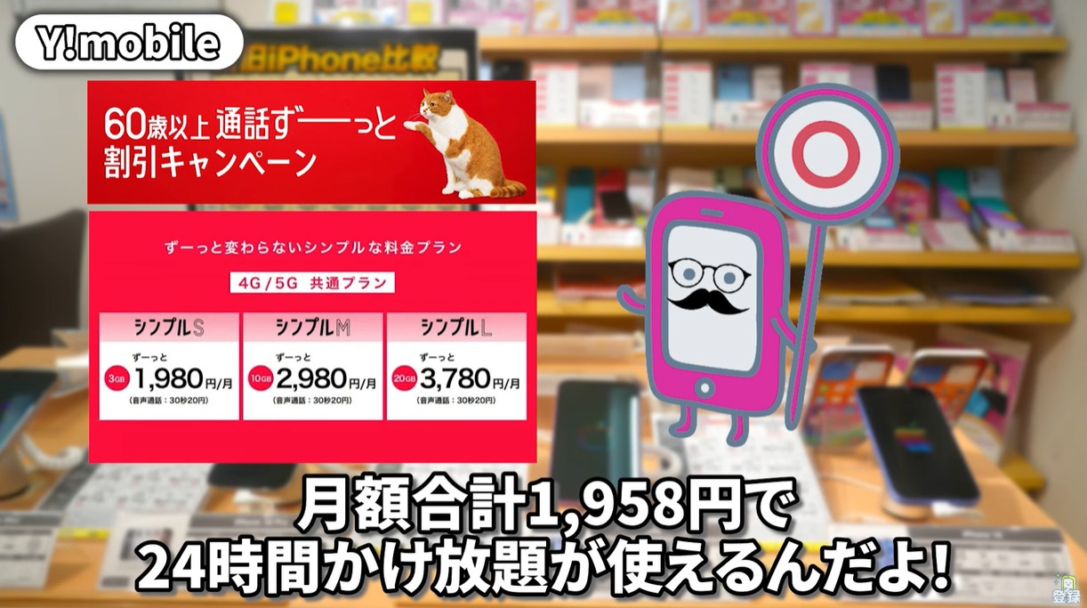 - 60歳以上なら通話かけ放題オプションが月額880円
