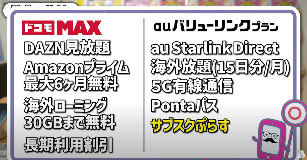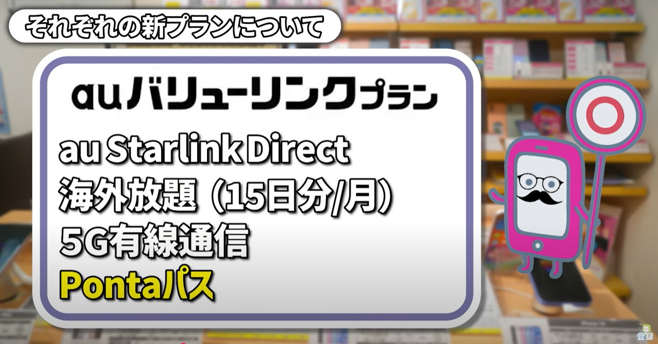 - auマネ活プラン:Pontaパス、海外15日無料、5G優先通信など
