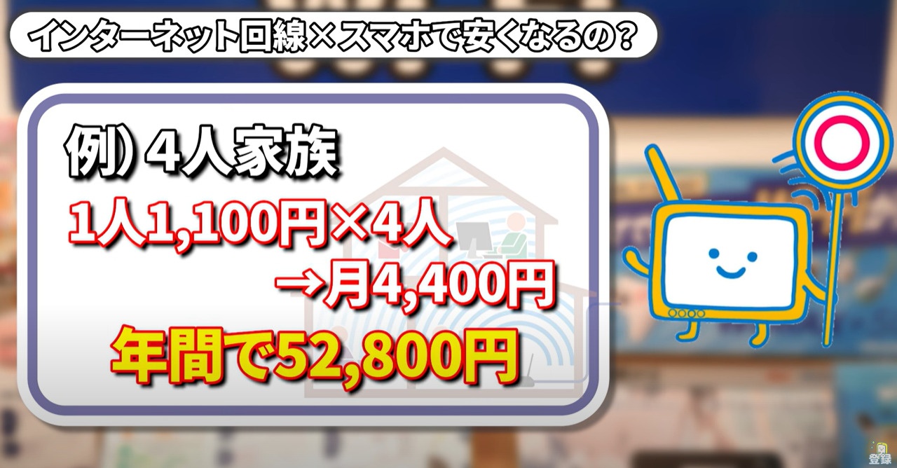 ポイントは「セット割引」。スマホとネット回線を同一グループ内で契約すると、スマホ料金が月額で割引されます。