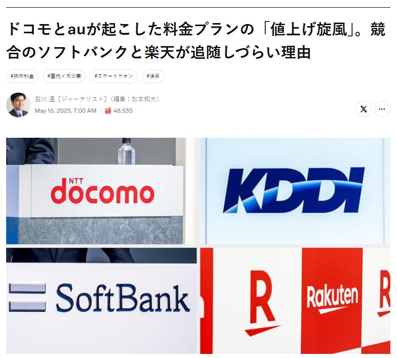 - 背景:設備電力費や代理店コスト増が理由。決算文脈でもドコモ・KDDIが“値上げへ舵”、SBは様子見という構図。