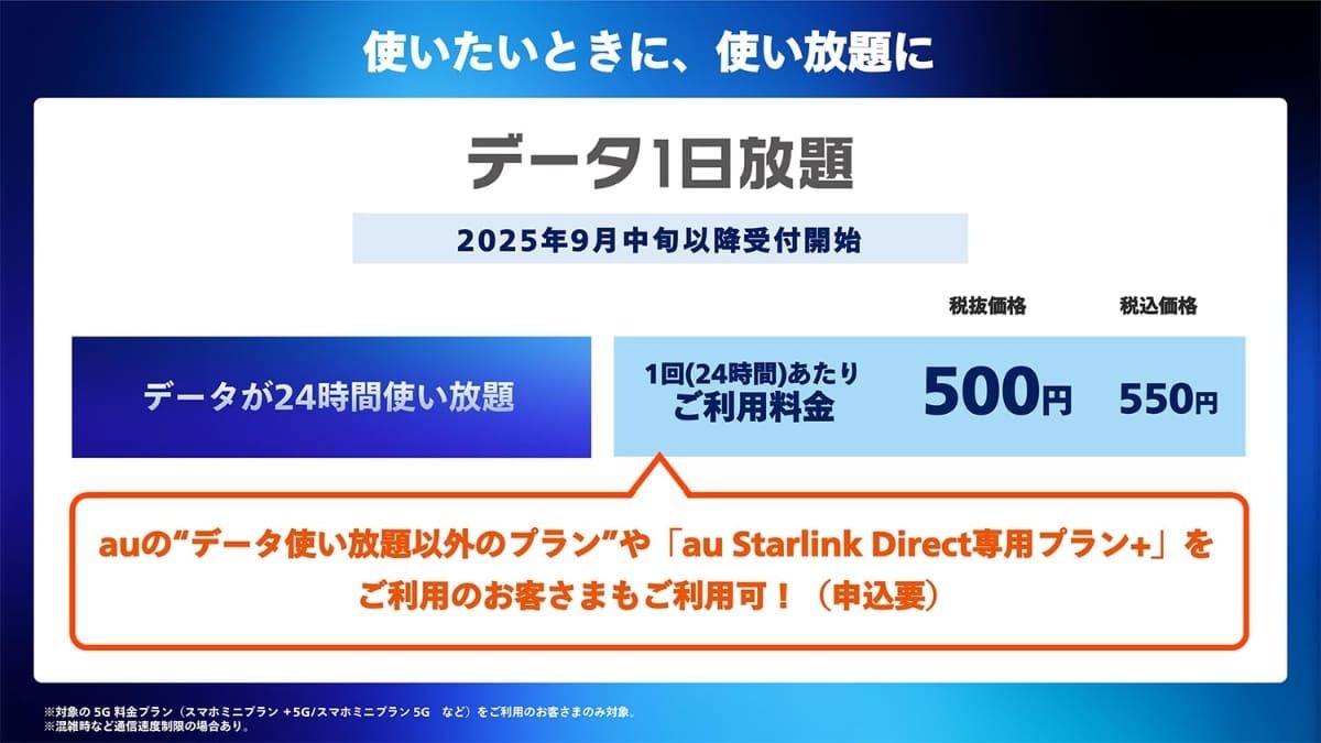 さらに「データ1日放題(550円/24時間)」や「Starlink衛星通信」への対応など、機能性と柔軟性も両立しています。