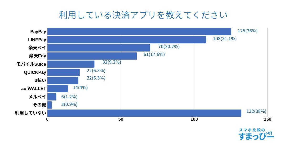 「なんとかペイ」こと決済アプリの中で一番人気はPayPayで36%の方が利用していました。