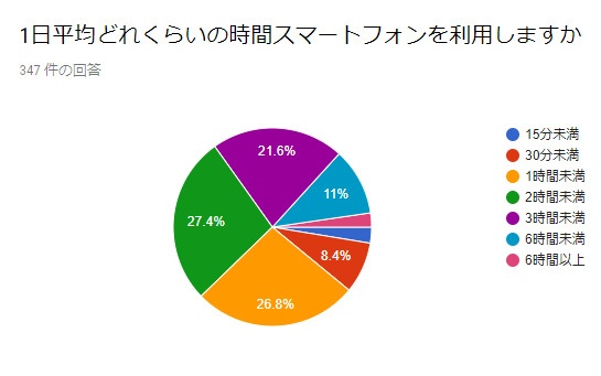 ほとんどの方は1日にスマホを利用する時間が3時間未満でした。