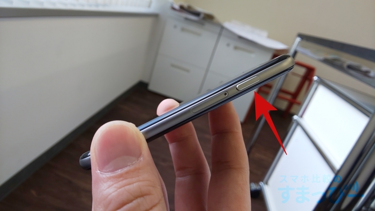 サイドの物理ボタンは1つで『電源ボタン』のみです。長押しで「シャットダウン」「再起動」「機内モード」がポップアップします。