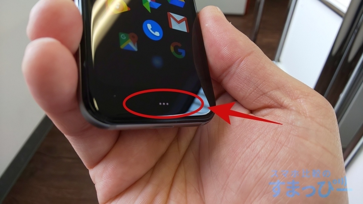 上画像のようなタッチボタンが下部にあります。1回タップで「戻る」、2回タップで「ホーム画面に戻る」、3回タップで「タスク表示」となっていて、Androidではおなじみの3つのナビゲーションバーを出すことなく操作可能なのですが、なれるまで少しわずらわしいと思います。