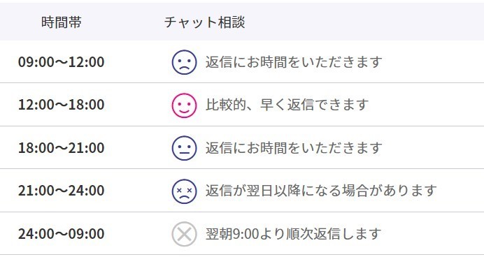 チャットサポートはすぐに返信があると思ったら1日後でした。毎回そうなので、そういうものだと割り切っています。