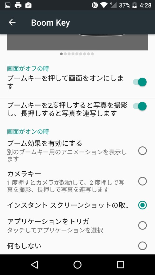 ボタンを1回押すとカメラが起動したり、2回連続で押すと撮影ができたりします。スクリーンショットを撮影するように設定を変更したりもできるので、自分がよく使う動作を設定しておけば便利な機能です。