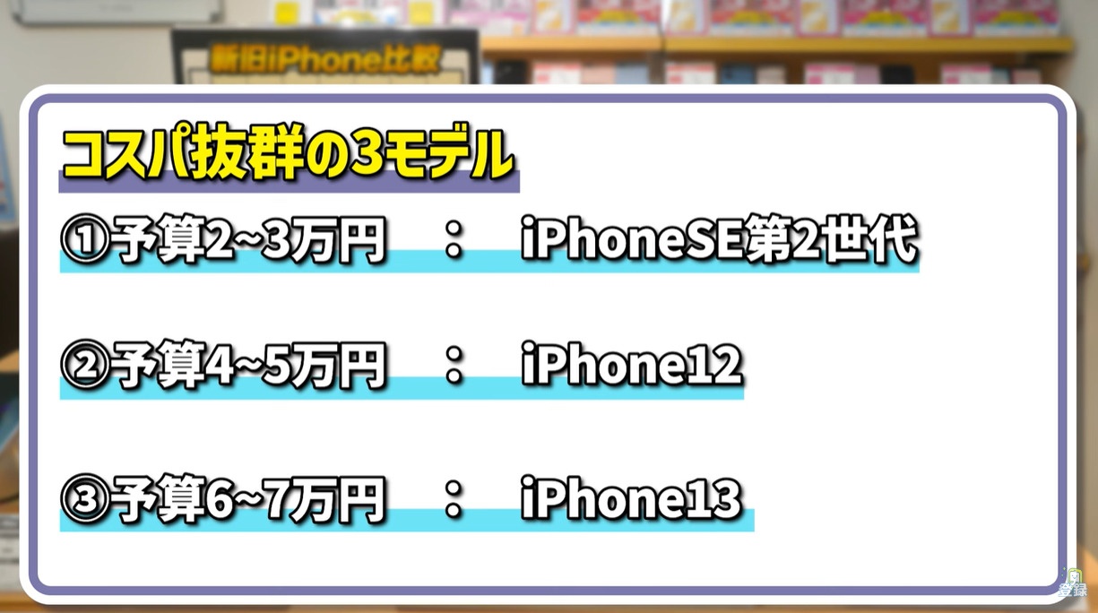 動画内では、用途別におすすめの中古iPhoneが3モデル紹介されました。